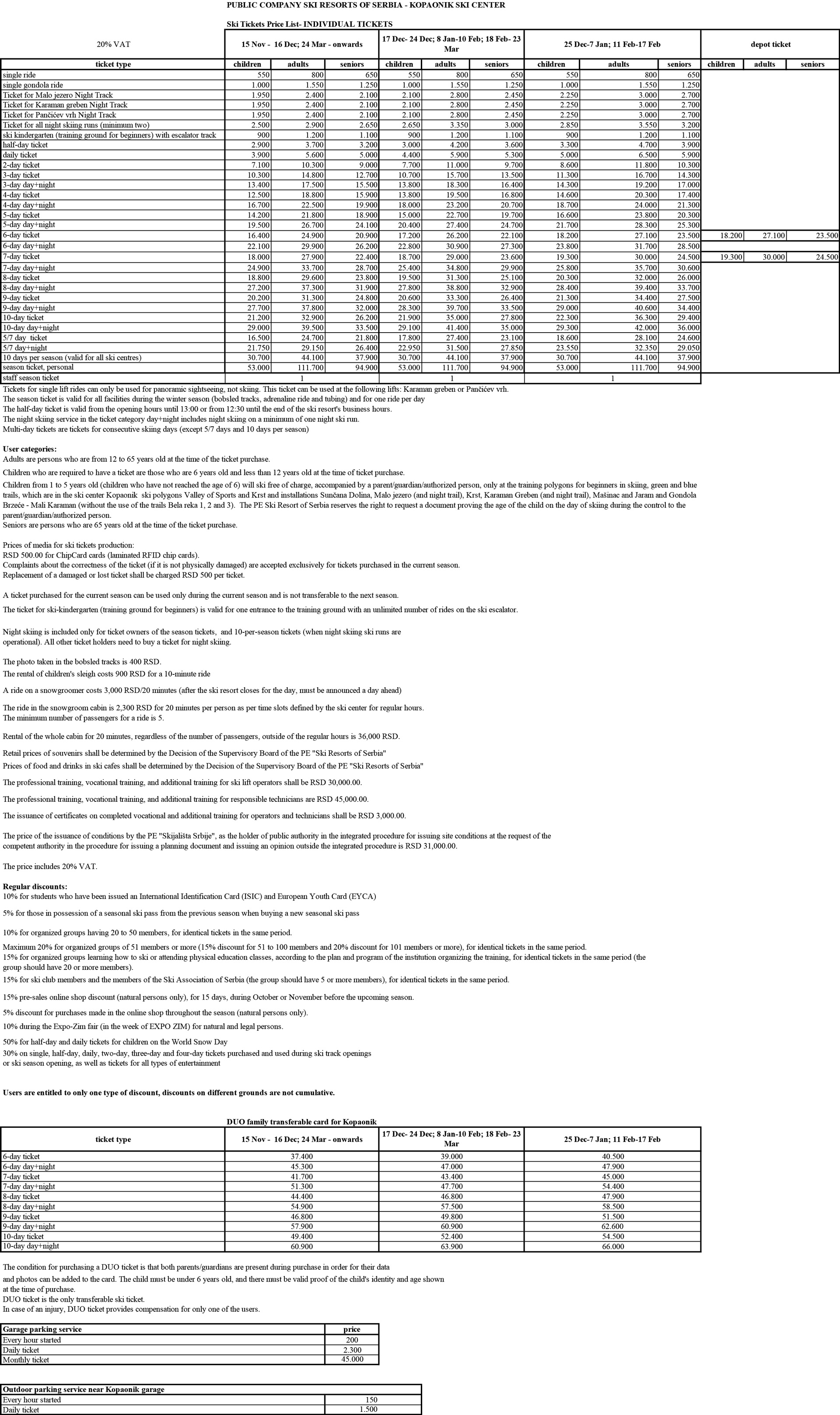 Wer Ski-in-Ski-out erleben möchte und noch Anfänger ist, sollte wissen, dass sich die wichtigsten Anfänger-Förderbänder im Kopaonik Ski Center befinden. Daher sollte man ein Hotel in der Nähe des Ski Centers Kopaonik buchen. Ein bekanntes Vier-Sterne-Hotel hier ist das Gorski. Man kann auch über Booking nach nahegelegenen Privatunterkünften suchen, die preisgünstiger sind und oft eine Waschmaschine und Küche bieten. Dieses Skizentrum verfügt über günstige Supermarktketten wie Maxi und Idea, sodass das Leben auch ohne Frühstück sehr bequem ist. InfoKop Hier finden Sie alle nützlichen Informationen zum Skifahren in Kopaonik: Wetter, Aktivitäten, Skipasspreise und Last-Minute-Preise für Unterkünfte. Die Last-Minute-Informationen sind jedoch nur auf Serbisch verfügbar, der englische Teil bietet aber ausreichend aktuelle Informationen zu geöffneten Liften und Pisten, die Skifahrer benötigen.